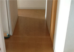 頻繁な歩行やホコリで汚れが付着しています。水拭き程度ではこのような汚れを取るのは困難です。