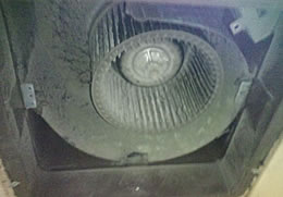 送風ファンと送風口がホコリやカビで汚れています。このような状態になるとクリーニングのサインですよ。